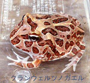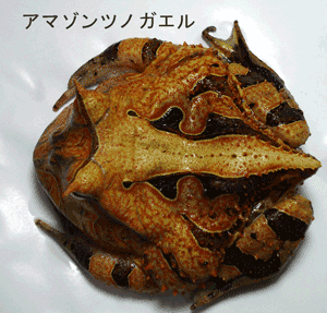 人気のツノガエルです。茶色のベーシックなタイプですが、大きく育てると立派です。 |
