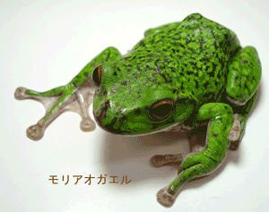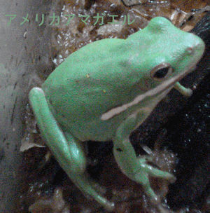 適度なおおきさの、飼い易いツリーフロッグ 湿帯産なので、環境も整え易いです。 性別:♂、♀ 原産国;アメリカ 2008年7月5日入荷 平均寿命;5年以上 成体時の大きさ:約5〜7cm 全身が浸ることのできる水容器を設置したテラリウムで飼育する。 現在、コオロギ(Mサイズ)を給餌中