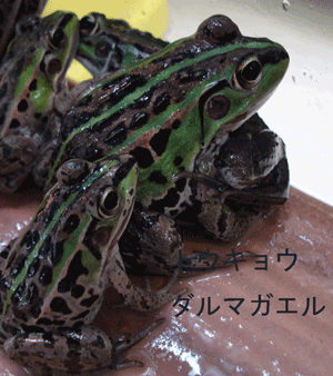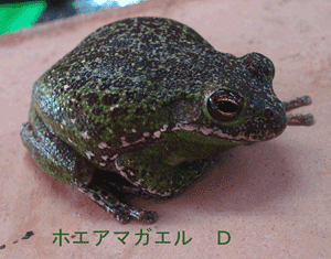 雌雄不明 原産国:不明 2008年5月22日入荷 平均寿命;5年以上 成体時の大きさ:約6〜8cm ニホン産水棲、陸生ガエルの飼育方法 |