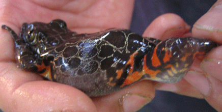 2010年4月15日入荷 平均寿命;10年以上 成体時の大きさ:11〜12cm 豊富な水量のアクアテラリウムで飼育し22〜28℃の水温を保つ。現在、冷凍マウス等を給餌中。