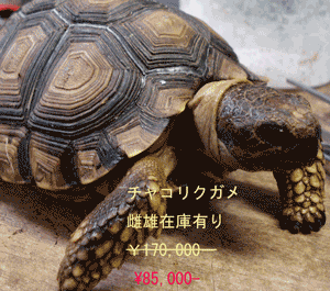 ケヅメリクガメ 現在のサイズ:6.5cm 価格:¥32,500− セール価格:¥16,250− |