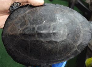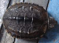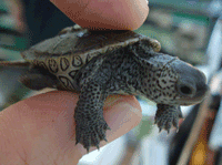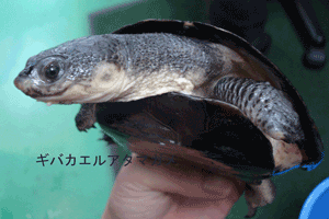毎年8月にやってきます。トンガリ口のスッポン、 アジア系に比べると丈夫です。 |